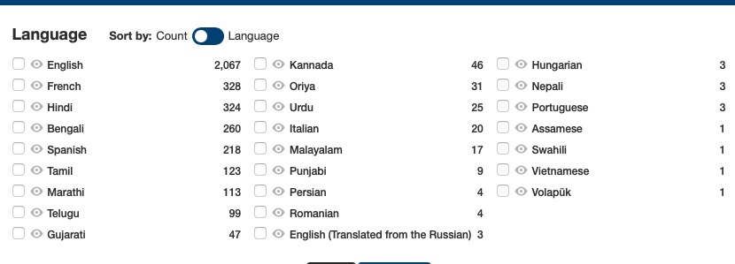 - Many Indic language scans added this year, particularly Tamil, Gujarati and Marathi.