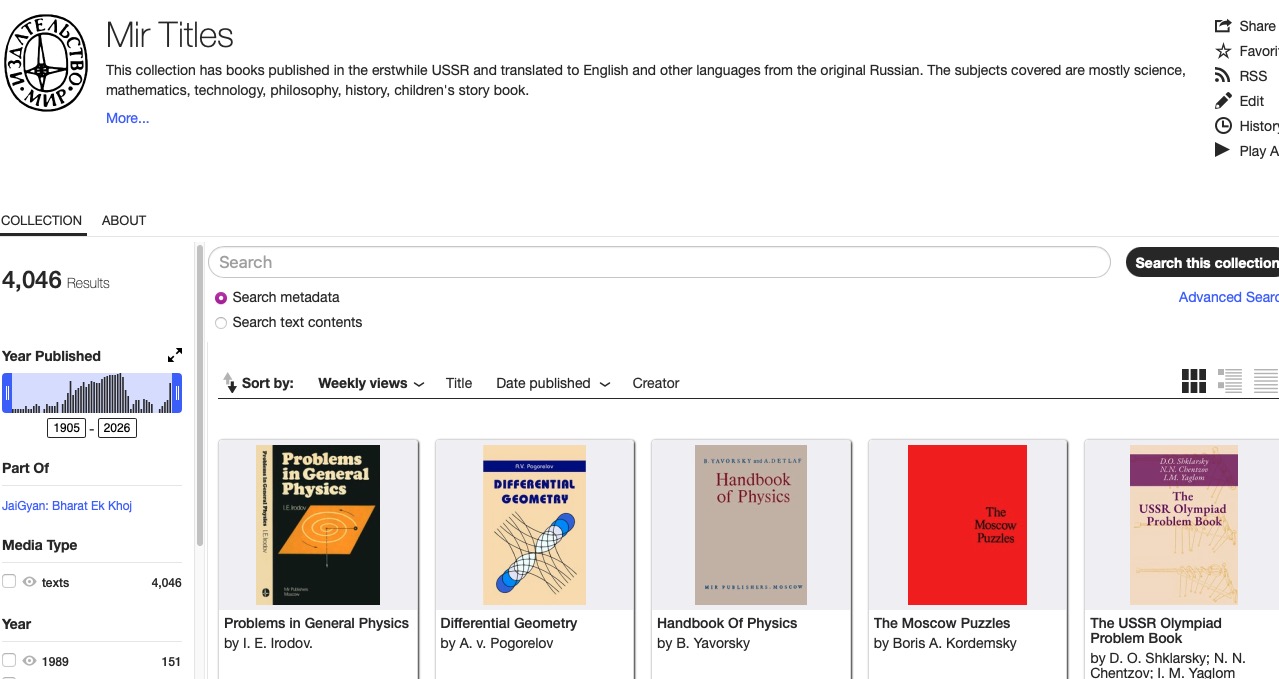 Of course this would not have been possible without support of all the well wishers and collaborators. A big thanks to Arvind Guptaji for making many books and scans available. Without his help and guidance this project would not have scaled.And I also received 5 boxes full of Soviet books from him!