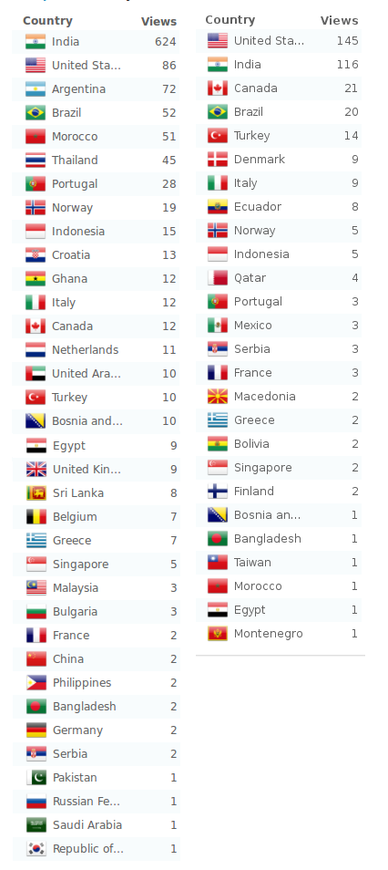 We have gone global now. Initially mostly people from India (though, even now they are majority) landed on the site, but now people from (almost) all parts of the world are visiting us! Just look at the visitor charts compiled over last two days: