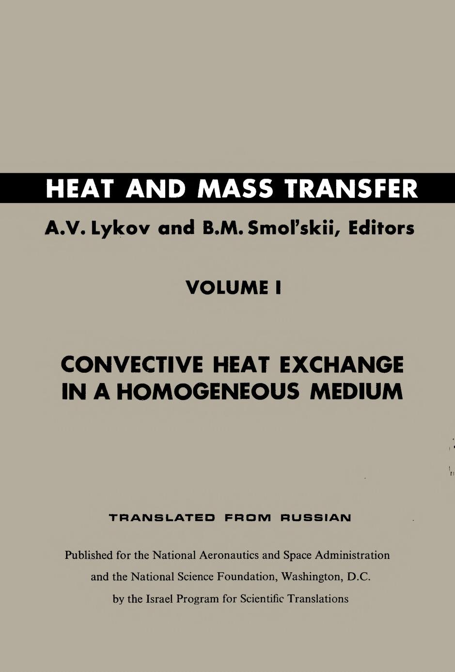 Volume 1 Convective Heat Exchange in a Homogeneous Medium edited by: B.S. Petukhov, I.P. Ginzburg, and А. S. Kasperovich
