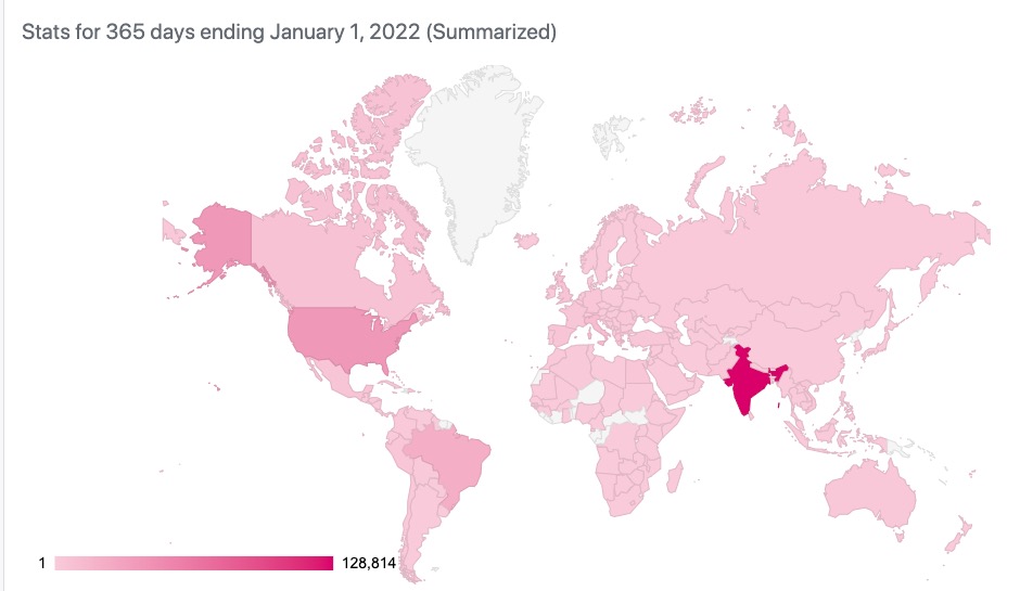 As for the reach except for a few countries mostly from central-western Africa, we have covered almost all the globe. Of course most of our visitors are from India, but I am happy that we reached out to these many places and people!