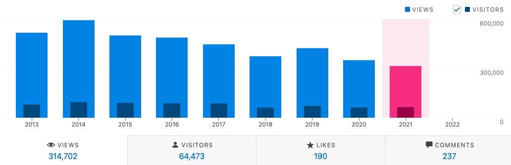 We had a little over 300,000 views this year with about 64 k unique visitors.
