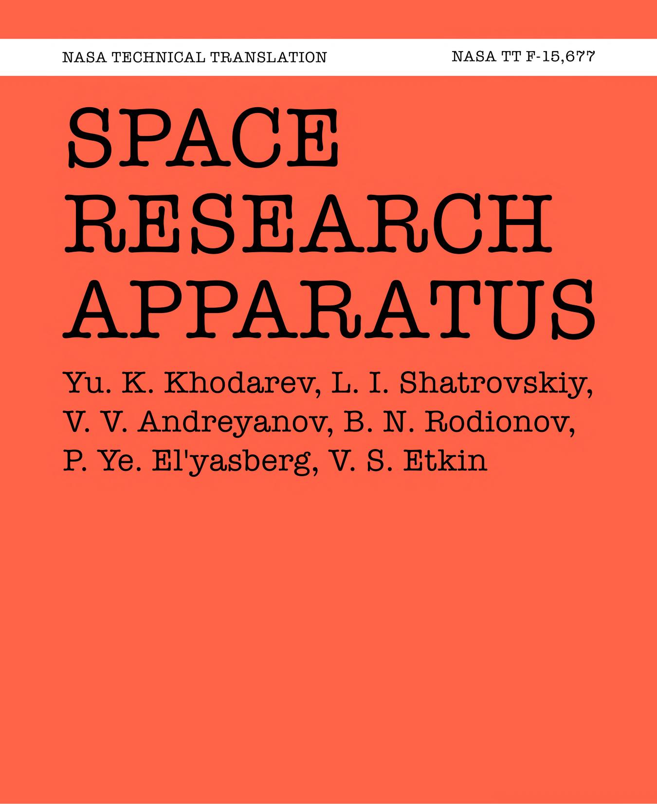 In this post, we will see the book Space Research Apparatus by Yu. K. Khodarev; L. I. Shatrovskiy; V. V. Andreyanov; B. N. Rodionov; P. Ye. El’yasberg, V. S. Etkin.