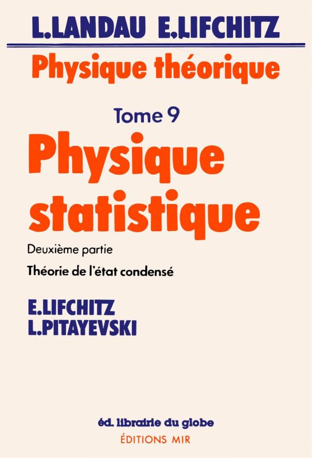 L. Landau ne figure pas parmi les auteurs de ce livre, mais le lecteur constatera que son nom revient souvent dans le texte. C’est qu’une part importante des résultats exposés ici sont dus soit personnellement à Landau soit à l’association du maître et de ses collaborateurs. Nos longues années de travail avec L. Landau nous permettent d’espérer que nous n’avons pas trahi sa pensée, tout en tenant compte des nouveaux résultats qui se sont accumulés depuis sa disparition.
