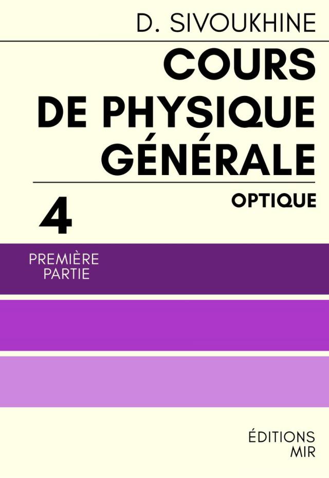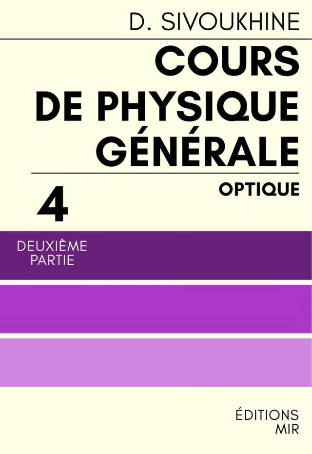 Le quatrième tome (en deux parties) du Cours de physique générale est consacré à l’Optique physique dont l’étude succède à celle de l’Electricité et du Magnétisme exposés dans le troisième tome. L’optique physique est envisagée du point de vue ondulatoire (électromagnétique) mais l ’optique quantique n’y occupe qu’une place assez restreinte. On introduit la notion de photon et on interprète le processus de rayonnement comme résultant des transitions quantiques des systèmes atomiques entre des états énergétiques différents afin d’introduire la notion de rayonnement induit et d’expliquer le principe de fonctionnement des lasers. Mais ce n’est que dans le cinquième tome consacré à la physique atomique qu’on donnera un exposé systématique des fondements de l’optique quantique et de différents phénomènes quantiques qui s’y rattachent (effet photoélectrique, effet Compton, lois spectrales, luminescence, effet Zeeman, effet Stark, etc.).