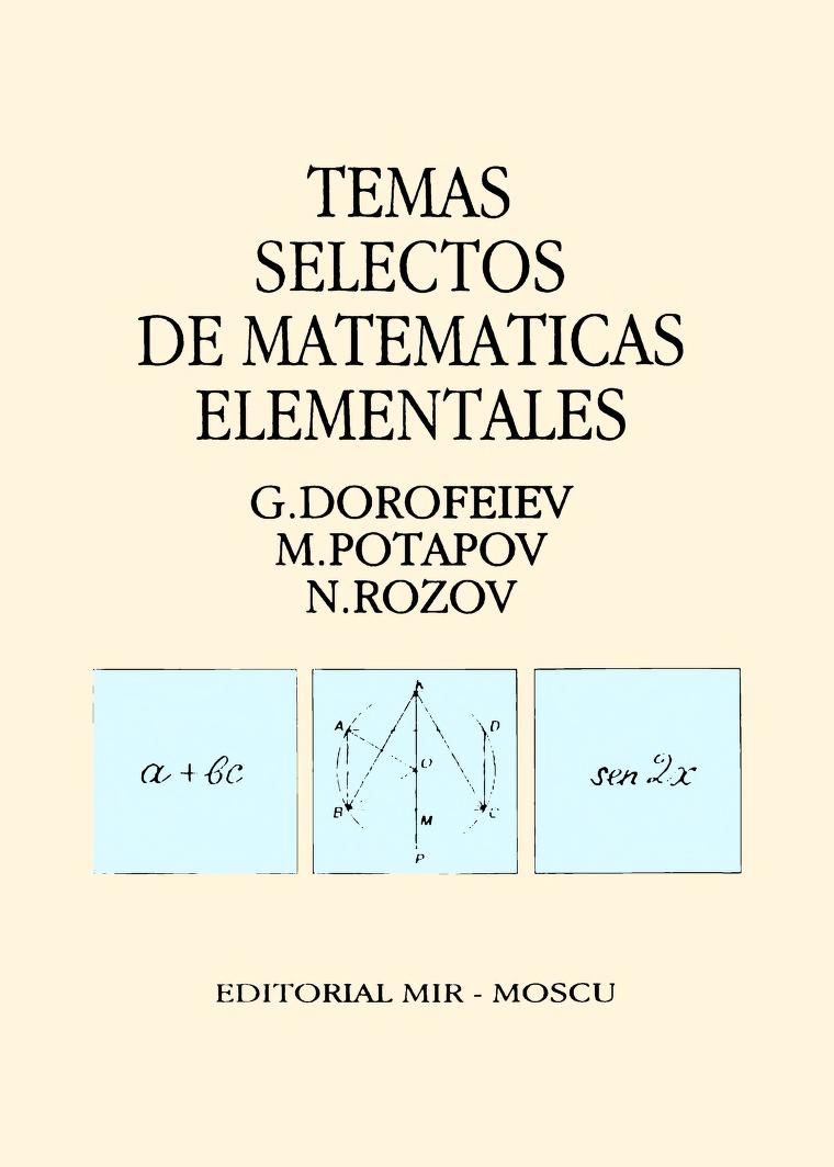 En este post, veremos el libro Temas Selectos De Matematics Elementales por G. Dorofeiev; M. Potapov; N. Rozov.