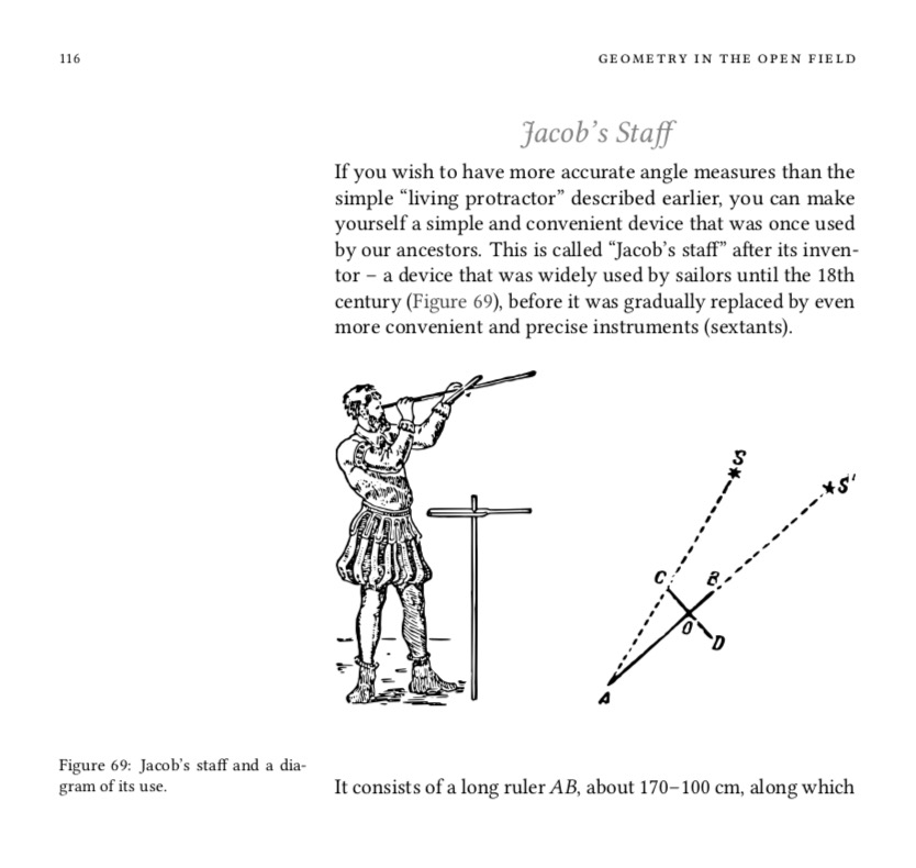 More importantly, this book is intended for those readers who studied (or are currently studying) geometry only at the blackboard and therefore are not used to noticing familiar geometric relationships in the world of things and phenomena around us, have not learnt to use the acquired geometric knowledge in practise, in difficult cases of life, on a hike, in a bivouac or front-line situation.