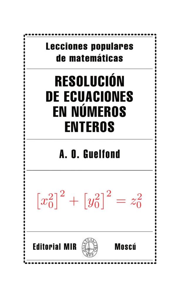 En este post, veremos el libro Resolución De Ecuaciones En Números Enteros ( Lecciones Populares De Matemáticas) por A.O. Guelfond (Gelfand).