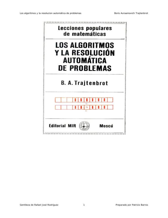En este post, veremos el libro Los Algoritmos Y La Resolucion Automatica De Problemas (Lecciones Populares De Matemática) by Boris A. Trajtenbrot.