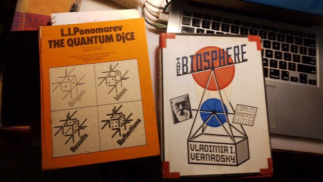 PS: A story about the Ponomarev’s book The Quantum Dice. The first time read about the book was way back in 1999 when I was still in college. I kept looking for this book finally got it after 25 years! I had thought it would be a small sized book (such as Science for Everyone) but it is a large one. Bonus, though not published during the Soviet era, I got another long awaited book last week The Biosphere by V. Vernadsky. This is the first time a proper English translation of the book was published. Though Lapo’s Traces of Bygone Biospheres and earlier Fersman’s Geochemistry for Everyone (thanks to @gnv64) helped spread ideas of Vernadsky in the West. I have been reading influence and impact of Vernadsky on our way of looking at world, our paradigm about evolution and our relation with our environment. Vernadsky’s work changes this perspective to ever further away from anthropocentrism. The impact of Vernadsky’s ideas is just getting started, hopefully leading to a much better understanding of ourselves and our only Biosphere.