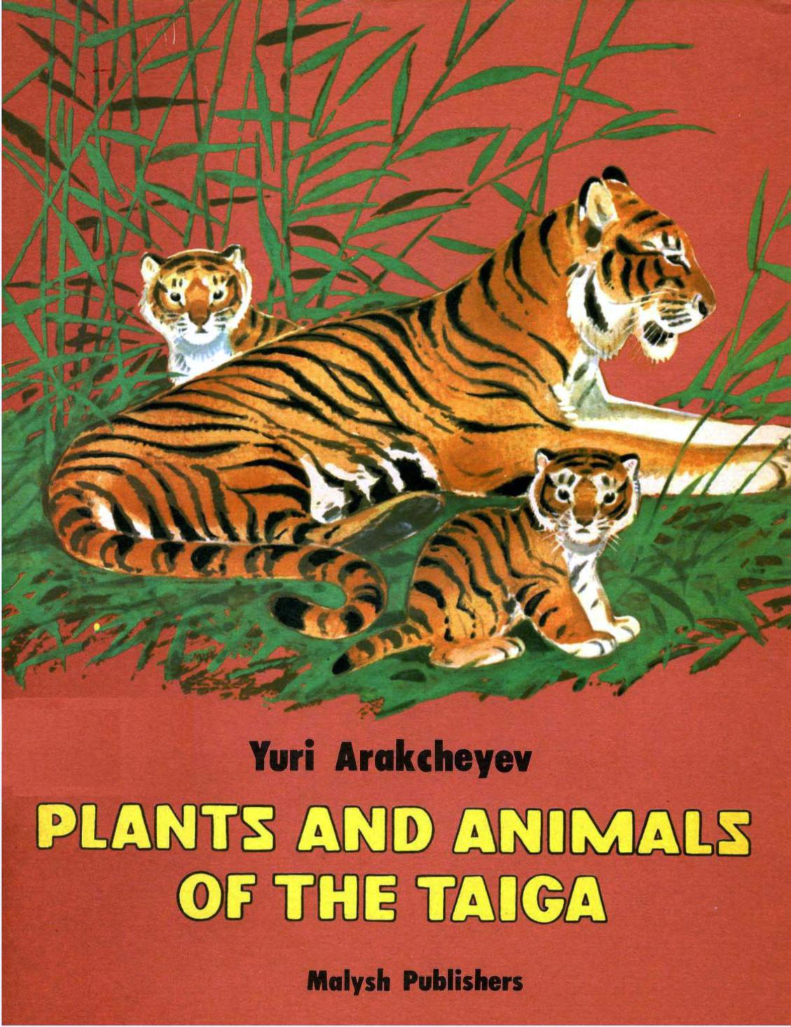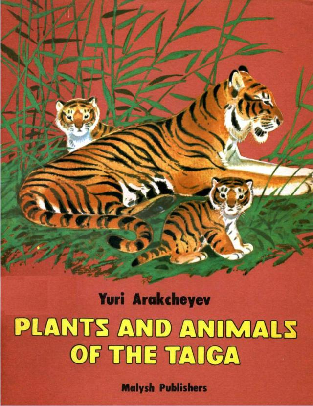 A small book depicting various plants and animals in the Taiga forest of the Soviet union.